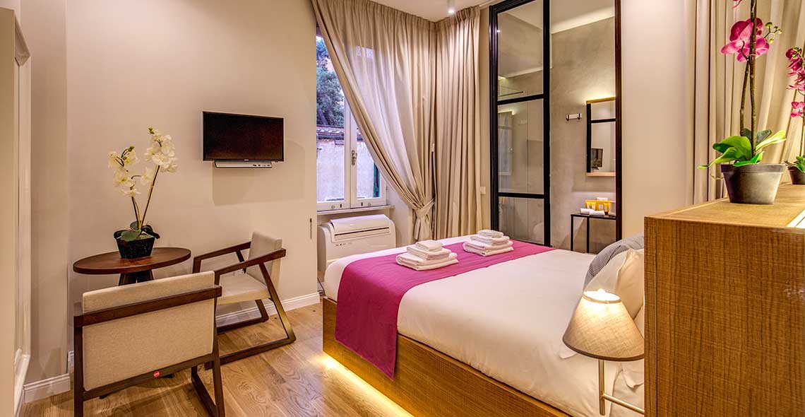 “The Spanish Suite” sono suite caratterizzate da un design moderno e particolare, una garanzia di alta qualità. Le camere Deluxe sono disponibili sia con letto matrimoniale che con letti singoli (su richiesta), dotate di bagno privato, climatizzate e hanno una superficie di 19 m². Sono camere ideali per chi vuole soggiornare a Roma in pieno centro e desidera maggiori spazi in camera, per un migliore comfort e un’esperienza ancora più soddisfacente. Su tutte le camere è inclusa la pulizia quotidiana. Il WiFi è gratuito e disponibile in tutte le camere.